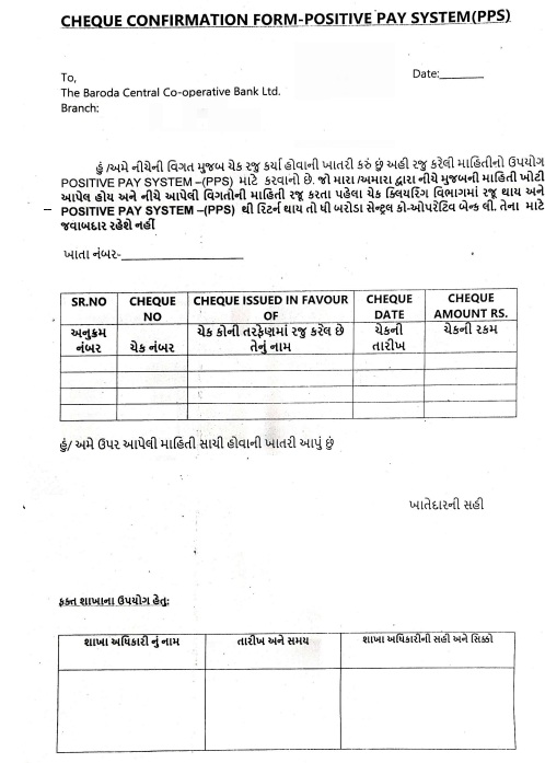 • As per Reserve Bank of India directives, the bank has implemented the Positive Pay System (PPS) for all modes of cheque payments (Cash/Transfer/Clearing).